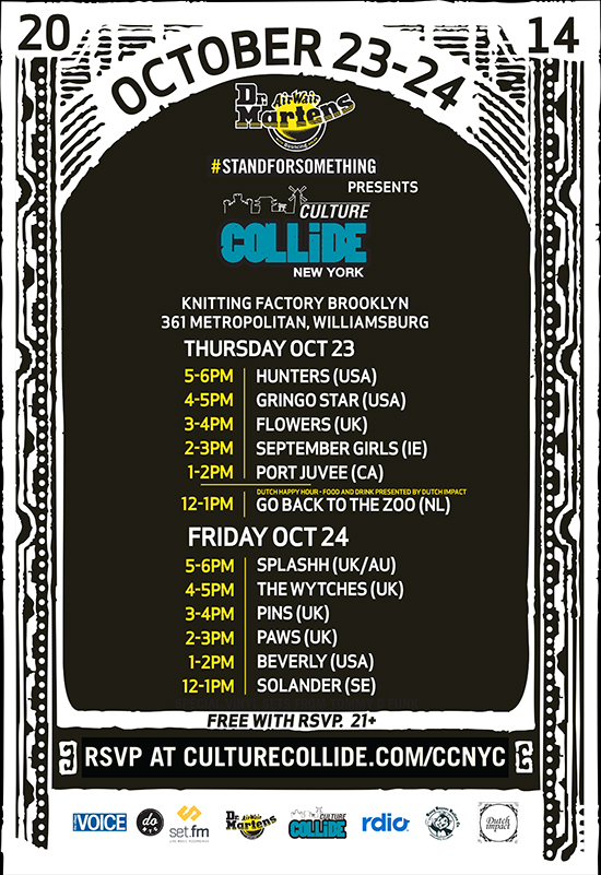 The event will follow-up next week, October 23-24 in New York City with Hunters, Splashh, The Wytches, Gringo Star and others performing at the event.