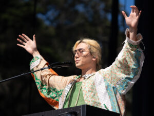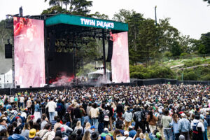 On the flipside, there were plenty of emerging acts who will certainly return to perform at bigger stages. Japanese J-Pop artist Fujii Kaze already had a large and diverse contingent at his set at the Twin Peaks stage. Dressed in an overflowing top and large pants, Fujii was in full control of the crowd who returned the energy during his upbeat songs as they danced and sang loudly. This year’s breakout artist Role Model had a large crowd at the Sutro stage as cell phones were out nearly the entire set. Songs like “Look At That Woman” and “The Longest Goodbye” really highlighted his showmanship and musicianship. As is now tradition, a surprise was in store during the performance of his hit, “Sally, When the Wine Runs Out”, and when queued up with “where’s my Sally tonight”, Troye Sivan danced onto the stage, which had the crowd go wild. 2hollis had an equally enthusiastic crowd at the same stage as the upstart artist danced and sang to his trademark hyperpop electronic beats. Set against surrounding trees as a backdrop during the late afternoon was an interesting paring with the strobe lighting and intensity of the music but it didn’t matter to the fans who were jumping and dancing along.
