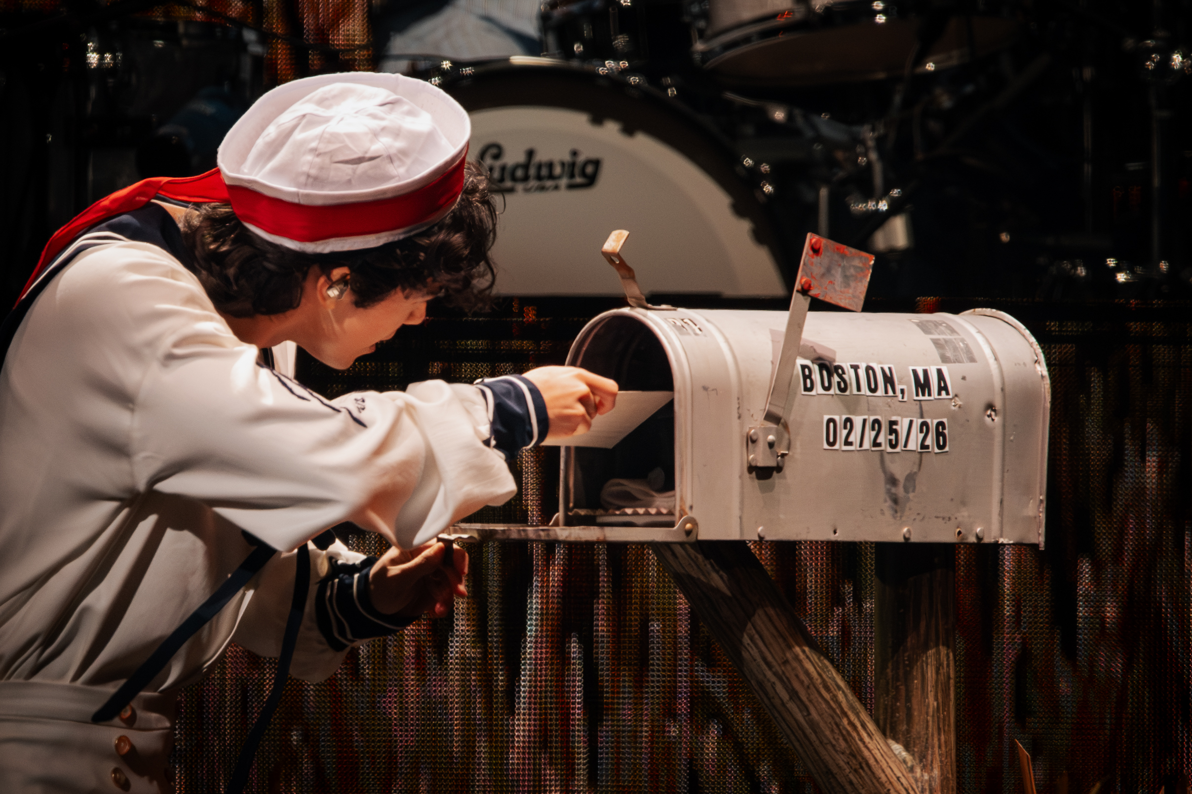 The opening chords of “My World” began to strum, and Conan made his grand entrance riding a bike across the stage. He hopped off and strutted toward a mailbox labeled “Boston, MA 02/25/26,” placing an envelope inside before pulling a microphone from the box, theatrics at their finest. From the first note, he gave 100 percent energy, prancing and jumping across the stage as fans screamed along.